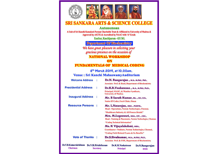 | 5 | “Biochemistry Talent Quest” | Sri Sankara Arts and Science College, Enathur, Kanchipuram. | 3rd February, 2018. | By Students of Biochemistry Department. |