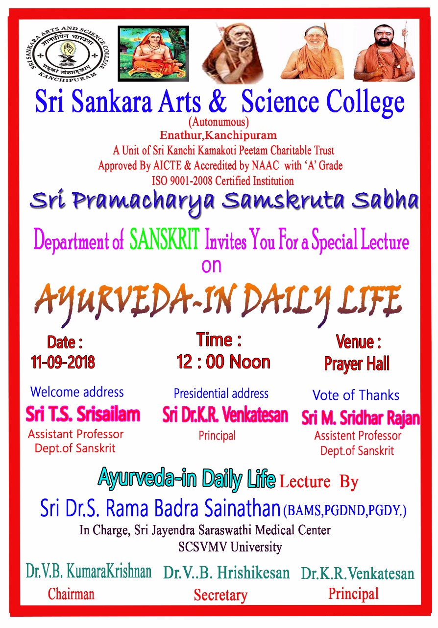 Sri Pramacharya Samskruta Sabha Department Of Sanskrit Invites You For A Special Lecture Date : 11-09-2018 @ 12.00 Noon Venue : Sri Kanchi Mahaswamigal Prayer Hall