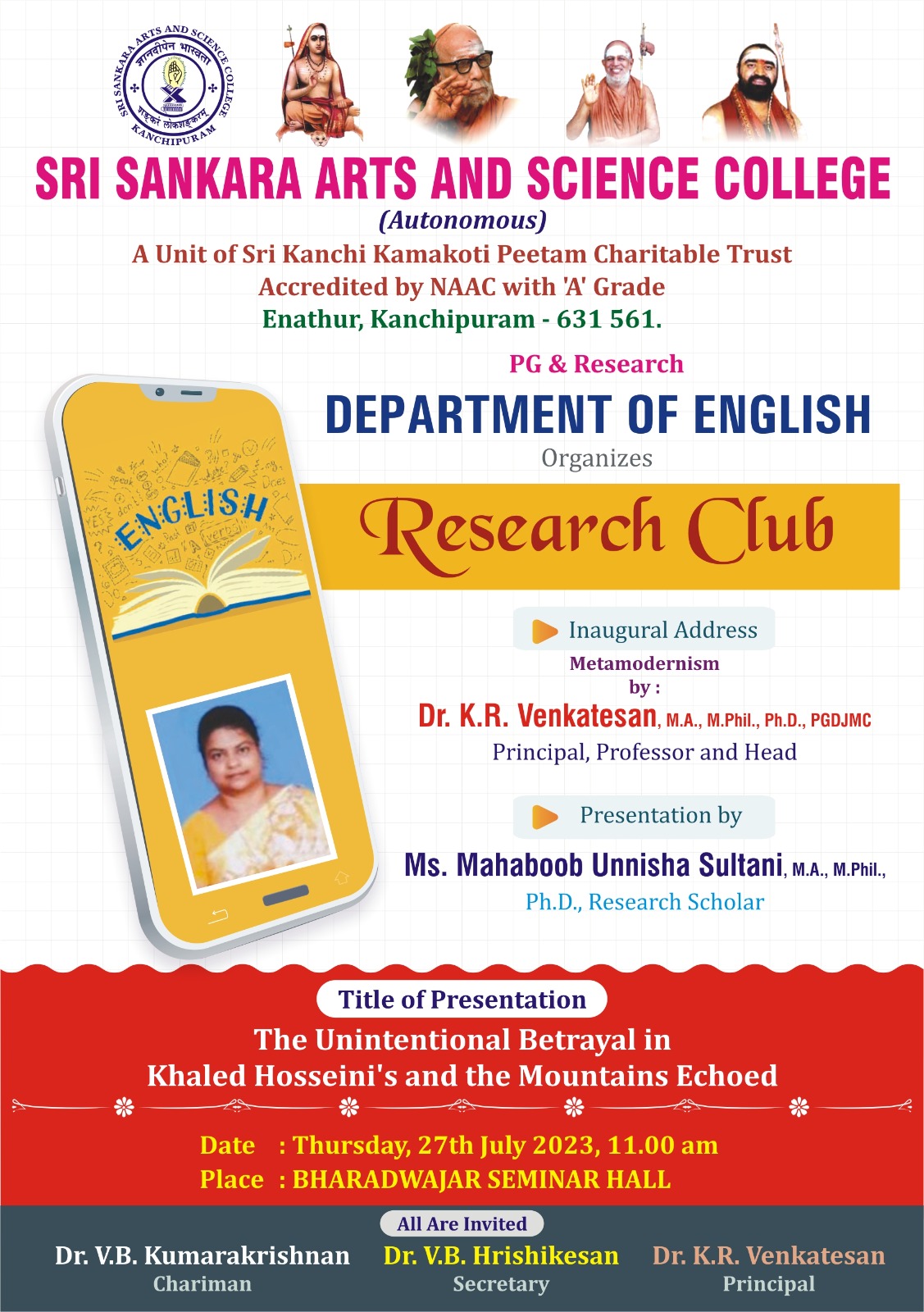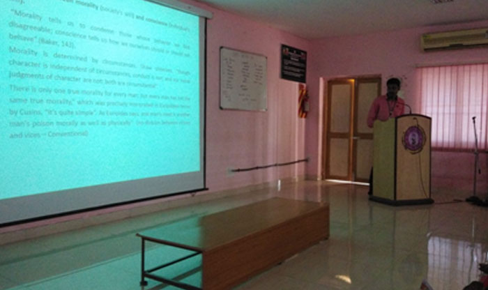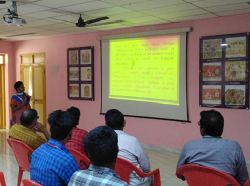 Research Club, an exclusive forum for research activities, enables the scholars and teachers to keep engaged in their field of research by preparing quality research papers and share them with peers to enrich their ideas and enlight others. Ultimately, the forum encourages the scholars to publish their papers in scholarly journals. The forum is convened twice in every month. In this academic year, all of our M.Phil., and Ph.D., scholars presented their research articles in this forum. Altogether, eight different topics were shared and analysed. Our Head of the Department had taken the strain to shape those articles into perfect works for publication.