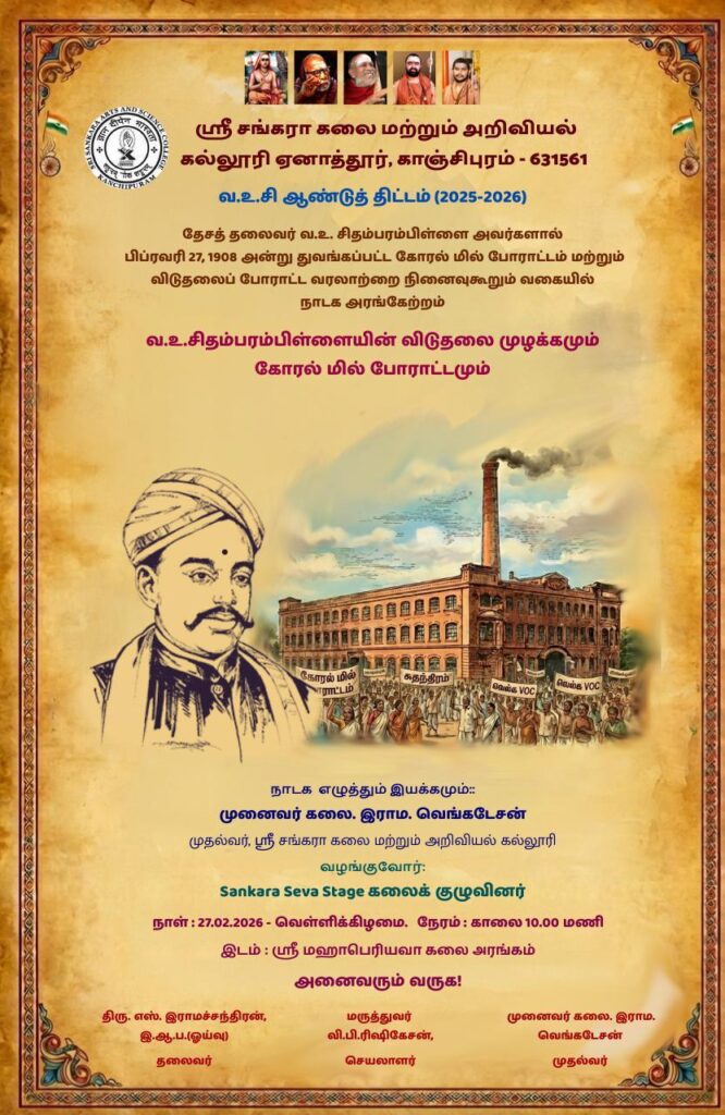 தேசத் தலைவர் வ.உ.சிதம்பரம்பிள்ளை அவர்களால் பிப்ரவரி 27, 1908 அன்று துவக்கப்பட்ட கோரல் மில் போராட்டம் மற்றும் விடுதலைப் போராட்ட வரலாற்றை நினைவுகூறும் வகையில் நாடக அரங்கேற்றம்