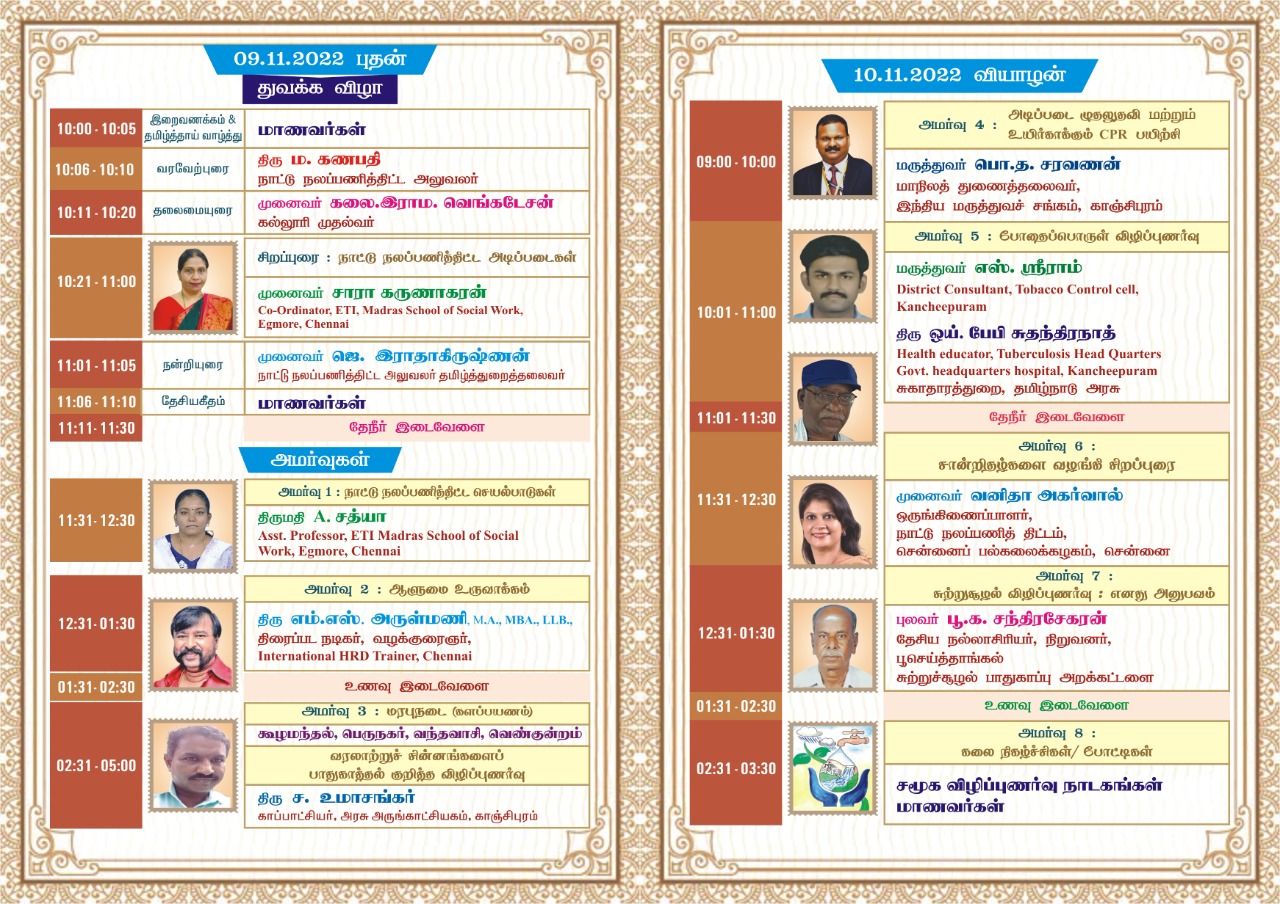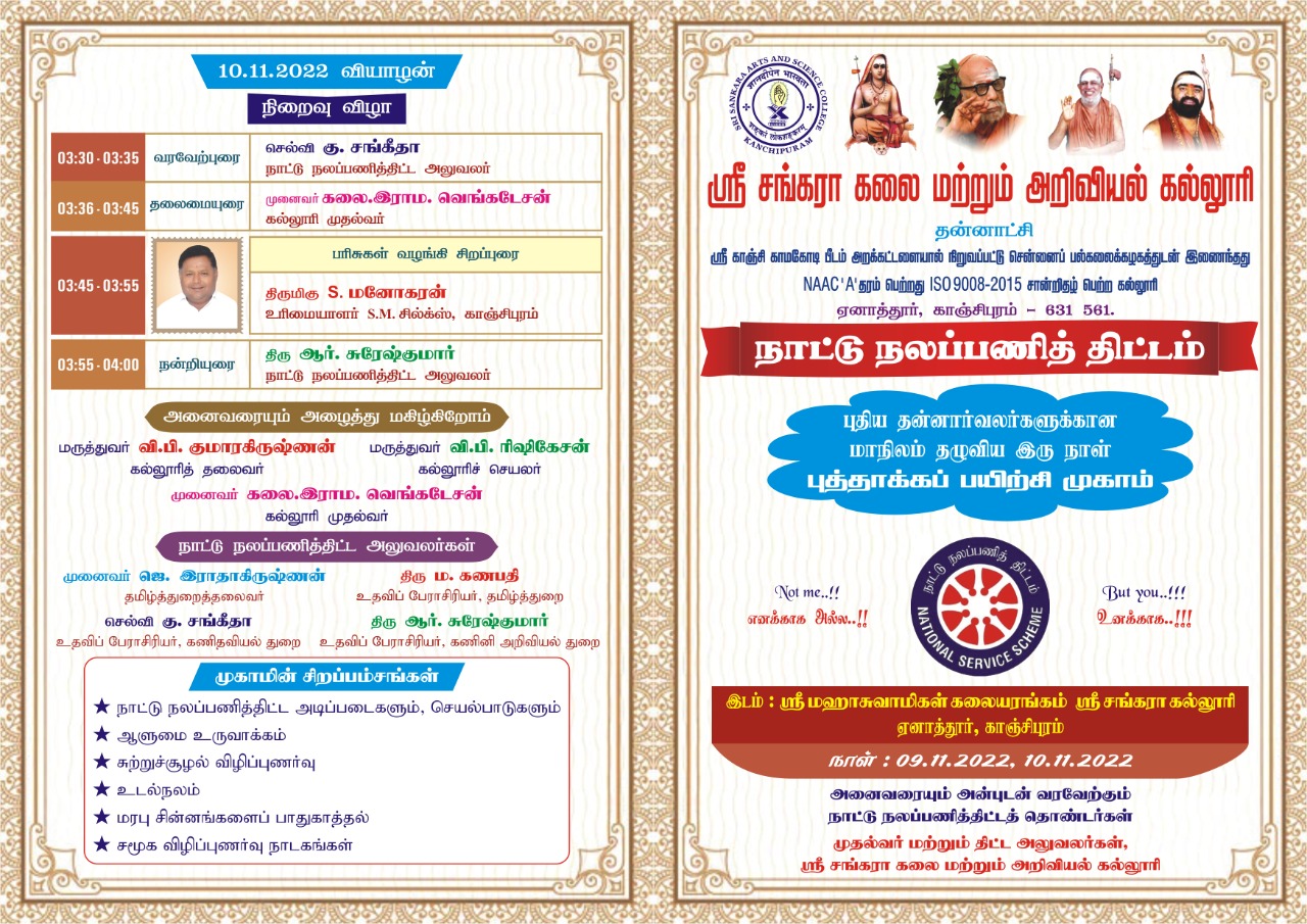 நாட்டு நலப்பணித் திட்டம் புதிய தன்னார்வலர்களுக்கான மாநிலம் தழுவிய இரு நாள் புத்தாக்கப்பயிற்சி முகாம் நாள் : 09/11/2022 , 10/11/2022