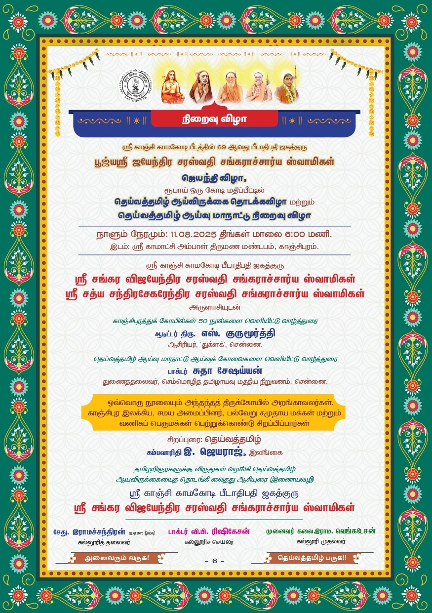பூஜ்யஸ்ரீ ஜெயேந்திர சரஸ்வதி சங்கராச்சார்ய ஸ்வாமிகள் ஜெயந்தி விழா- தெய்வத்தமிழ் ஆய்வு மாநாடு