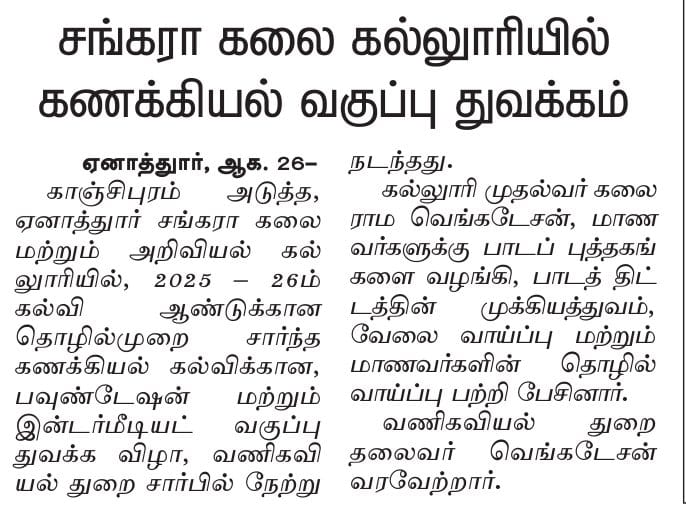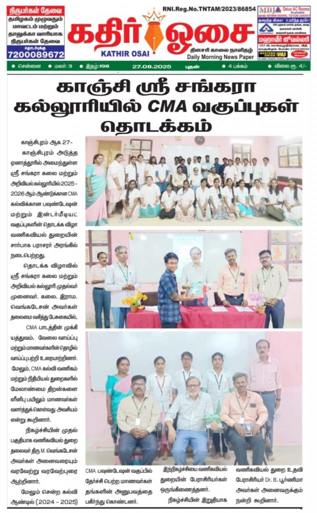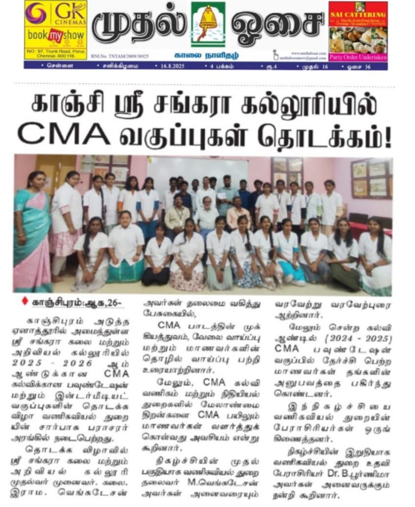 ஸ்ரீ சங்கரா கலை கல்லூரியில் CMA வகுப்புகள் தொடக்கம்