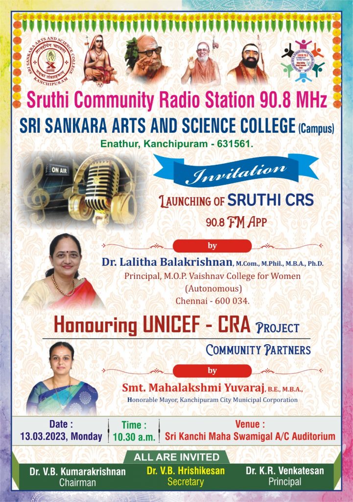LAUNCHING OF SRUTHI CRS 90.8 FM APP Date : 13.03.2023 Time : 10.30 A.M. Venue : Sri Kanchi Maha Swamigal A/C Auditorium