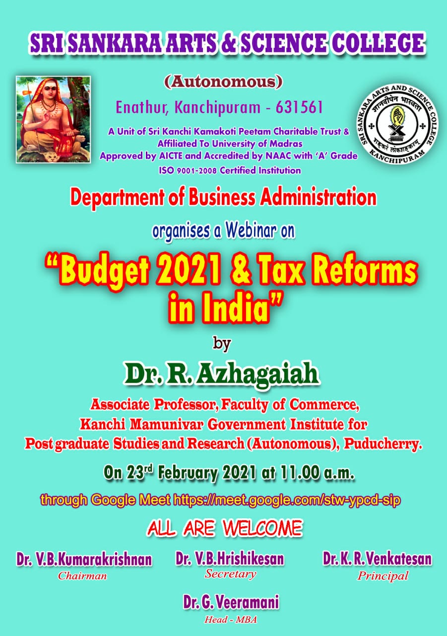 Department of Business Administration Organises a Webinar on “Budget 2021 & Tax Reforms in India” on 23/02/2021 at 11.00 AM